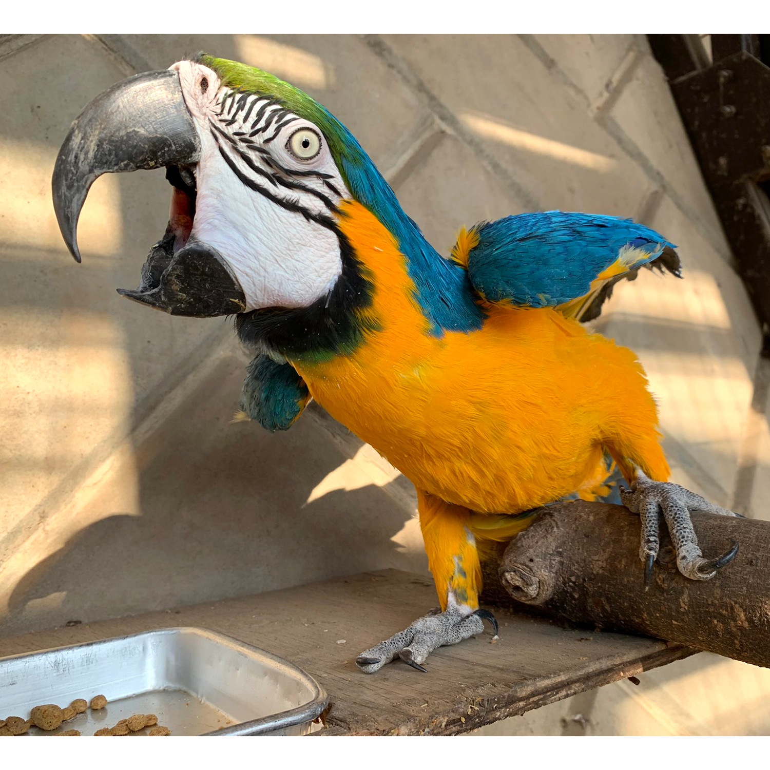 カラフルで陽気なソラ。おもちゃで遊ぶのも大好きです。ぜひ動物園にも会いに来てくださいね!