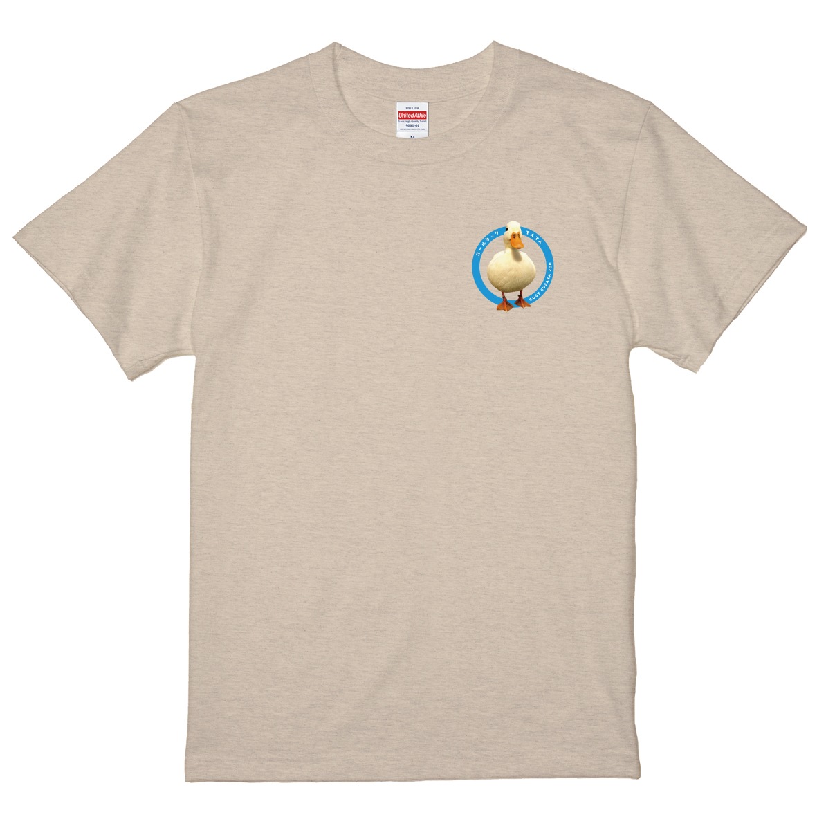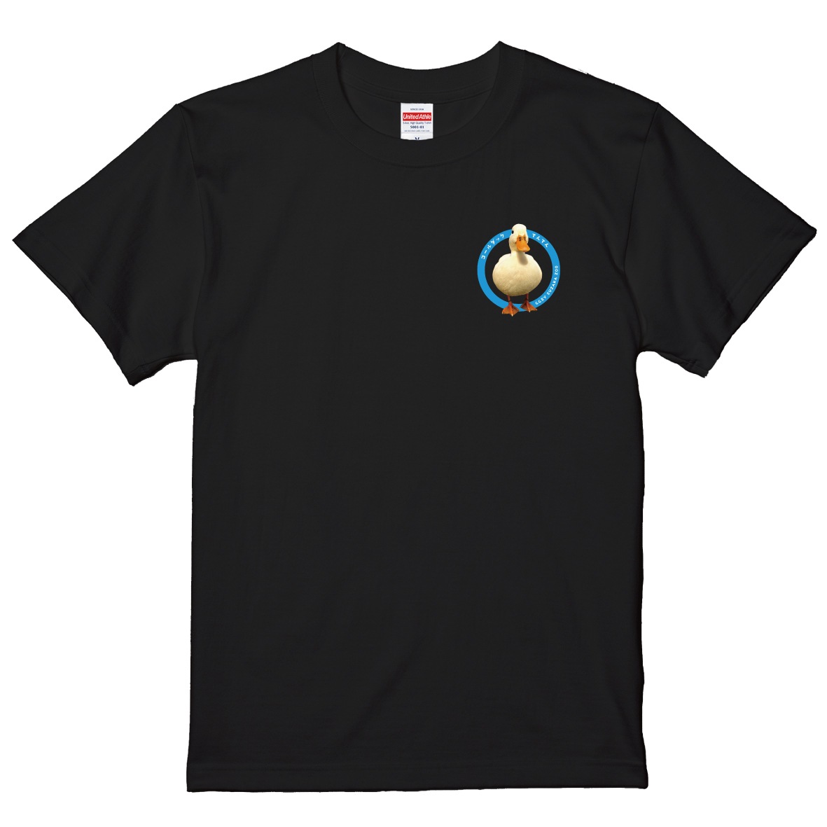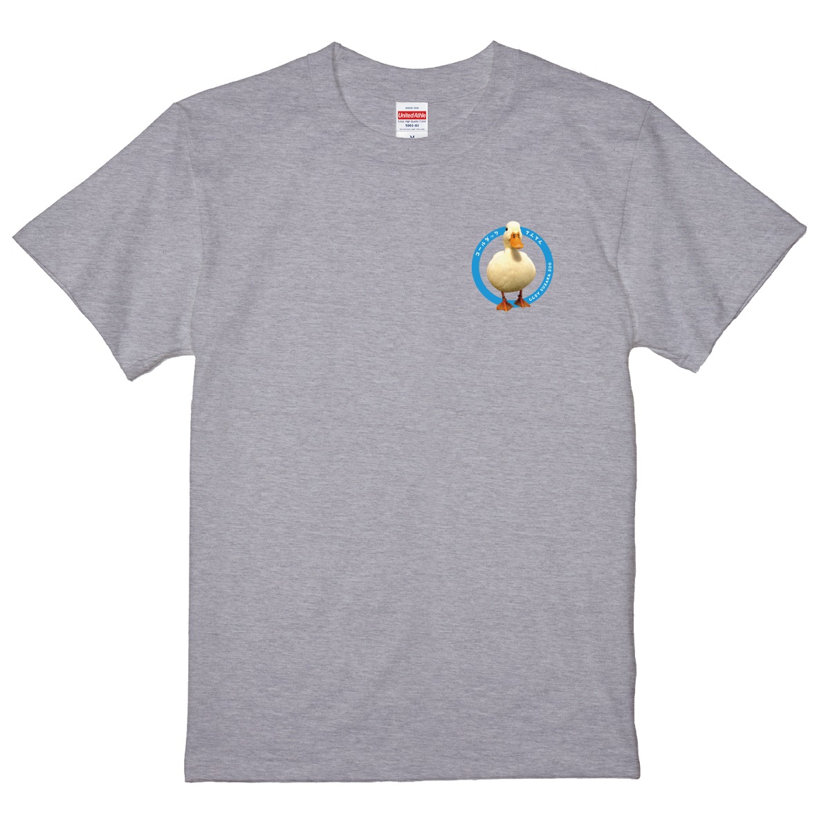 須坂市動物園の人気動物をあしらったワンポイントTシャツ。くりくりおメメとプリプリお尻で大人気の、コールダックの「てんてん」です!