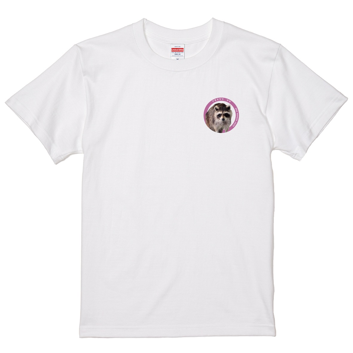 須坂市動物園の人気動物をあしらったワンポイントTシャツ。アライグマの「マグ」です!