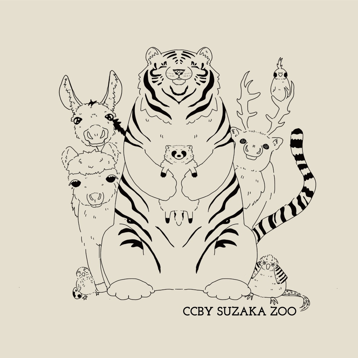 須坂市動物園の動物たちが集合した飼育員直筆イラストのトートバッグです。ぜひこのトートを持って動物園に遊びに来てくださいね!