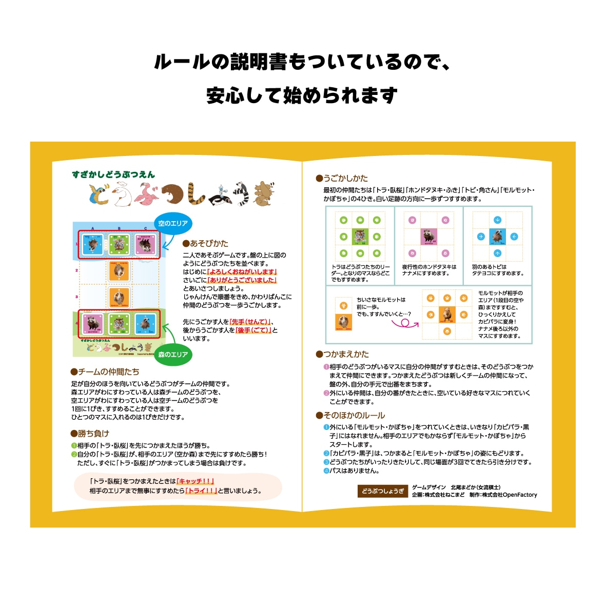 将棋の女流棋士である北尾まどか氏が考案した「どうぶつしょうぎ」は、駒の漢字が読めない、動かし方が分からない、そんな初心者のお子さまでも楽しめる将棋の入門ゲーム。実際に子供の頃にどうぶつしょうぎに触れて棋士になったという人もいる、簡単だけどとても奥が深いボードゲームなんです。