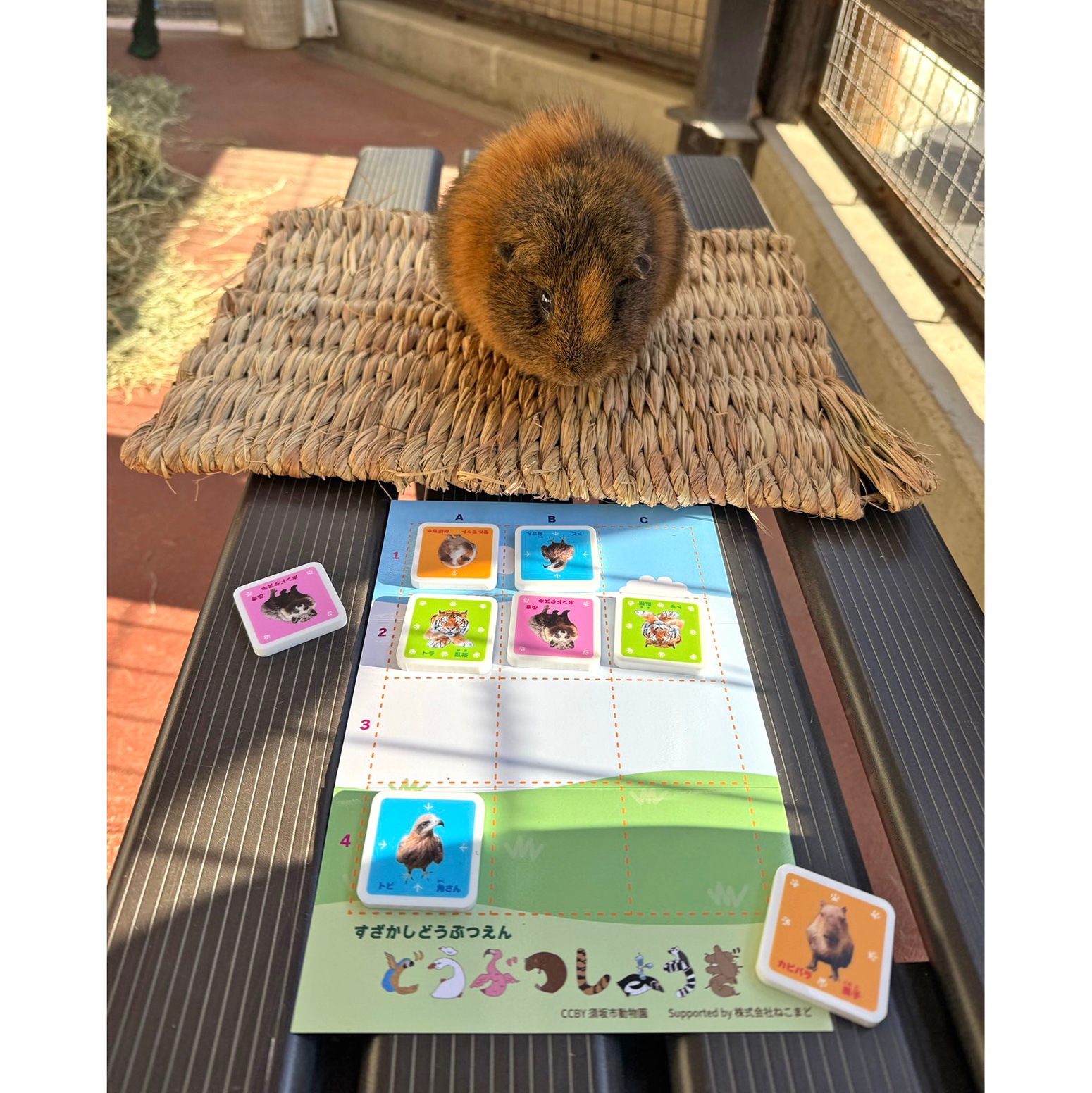駒はもちろん園の人気者たち「トラの臥桜」「ホンドタヌキのふき」「トビの角さん」「モルモットのかぼちゃ」そして「カピバラの黒子」です。みんなの足跡にも注目してくださいね。