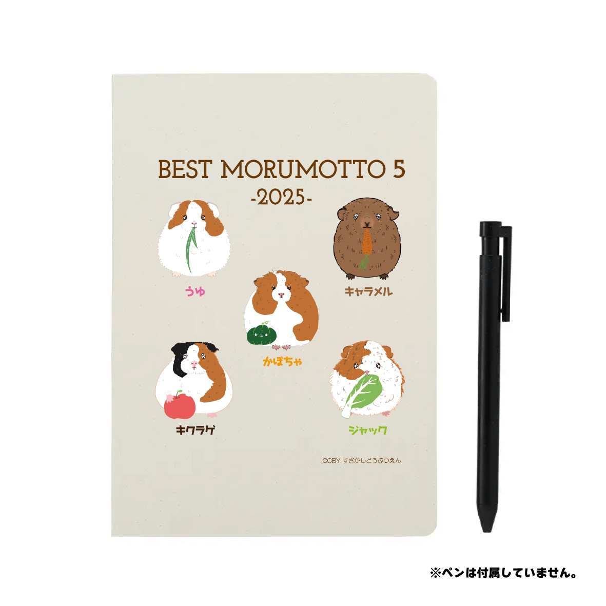 見事勝ち抜いた上位5頭のモルモットたちを飼育員がイラストに描き、A5サイズノートにしました。