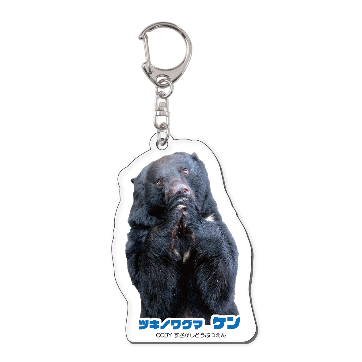 消防ホースで作ったハンモックが大好きな、ニホンツキノワグマの「ケン(オス)」のアクリルキーホルダーです。